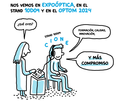 Y, para invitar a los profesionales de la salud visual y auditiva, de una forma original y divertida, y poco convencional, a conocer todo lo que Cione tiene que mostrar en ExpoÓptica y en el OPTOM, cuenta con un viejo amigo de la casa: el diseñador e ilustrador Javirroyo.